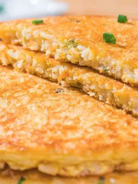 5. 下油热锅,放入锅中倒入,小火慢煎,煎熟成型,煎好后切开,就可以开吃啦。